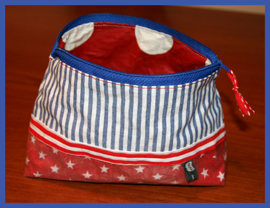 Die Streifen-Sterne-Punkte-Tasche war übrigens mein Nähprojekt No. 5 – bei 10 habe ich dann endlich aufgehört zu nummerieren :-). Und verschenkt habe ich dieses Täschchen dann auch nicht, ich bin ja nicht ganz zufrieden mit dem Ergebnis, das wollte ich es so auch nicht jemandem anderen geben… Dies aber nur am Rande, ich habe ja selbst genügend Krimskram, der aufbewahrt werden möchte.