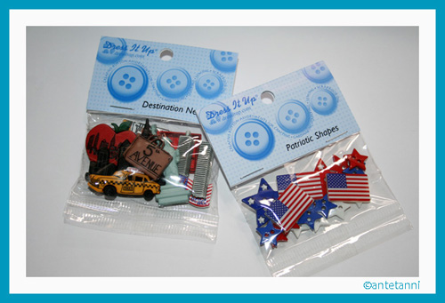 Gekauft habe ich die Knöpfe bei Dawanda. Im dort entdeckten Shop gab es gerade eine Rabatt-Aktion… wie praktisch. 🙂 Ich konnte nicht widerstehen und so habe neben zwei Packungen Tiny Sewing und Sew Cute Spools/Scissors auch gleich noch zwei Päckchen mit USA-Motiven Patriotic Shapes (die hätte ich mal haben sollen, als ich meine Stars-and-Stripes-Phase hatte… *lach*) und Destination New York (die hätten sich gut auf der Tasche für meinen Neffen gemacht…) sowie ein Päckchen Peace gekauft. Die nächsten Nähprojekte warten…