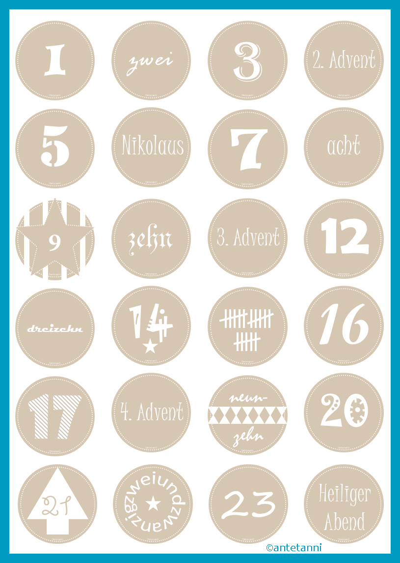 Adventskalenderzahlen Natur-Weiß | antetanni bastelt