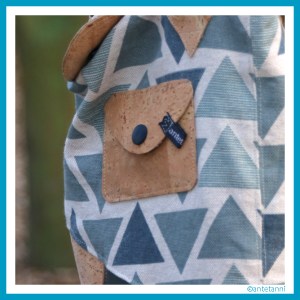 Für die Tasche im Format von rund 30 cm Höhe, 28 cm Breite und 5 cm Tiefe (dank abgenähter Bodenfalten) habe ich zum ersten Mal Korkstoff vernäht – ich bin begeistert, das Material lässt sich wunderbar verarbeiten. Dazu Kunstleder und einen kräftigen Dekostoff aus Baumwolle/Polyester, der recht stabil ist (jedoch sehr ausfranst, wäre in der Overlockemaschine nicht gerade noch Rot eingefädelt und ein Rollsaum eingestellt gewesen, hätte ich die Kanten hier zur Sicherheit noch abgekurbelt, aber es hat auch so alles gut funktioniert). Da der Korkstoff wie auch das Kunstleder etwas fester sind, habe ich zum Nähen eine Jeansnadel verwendet (mehr zur richten Nadel für jeden Stoff enthält mein kleines Nadel ABC).