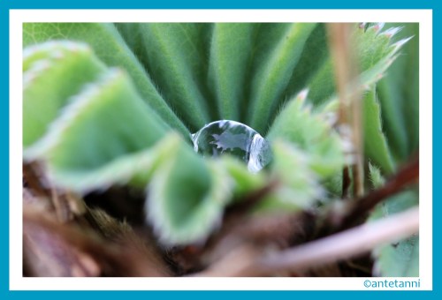 Und schließlich – noch im Park – ist mir mit dem Makro-Objektiv diese Aufnahme gelungen… Was so alles in einem winzigen Wassertropfen Platz hat… ♥