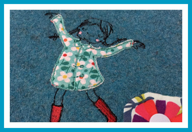 …und so hat sie die Hülle nicht nur mit diesem fröhlich hüpfenden Mädchen verziert, sondern auch noch mit dem Namen des Babys bestickt hat. Hach, wunder-wunderschön finde ich das. Schade, dass meine Nähmaschine nicht über so eine umfangreiche Stickfunktion verfügt… Wobei – so ergibt sicherlich noch die ein oder andere Tauscherei, was, Gabi?