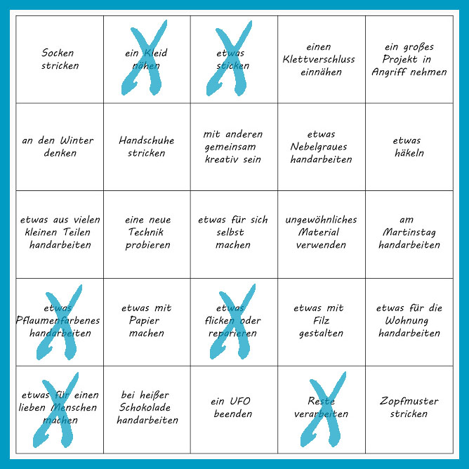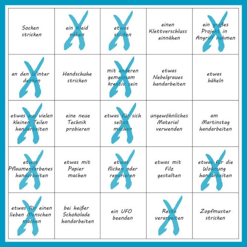 Höchste Zeit für eine Halbzeit-Analyse beim HerbstHandarbeitsbingo.