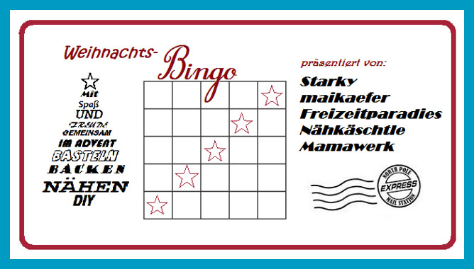 Nach dem Weihnachtscountdown im Dezember 2016 rufen Anja, Maika, Ingrid, Anja und Cathleen in diesem Jahr zum Weihnachtsbingo auf. Nach dem HerbstHandarbeitsbingo gehts quasi nahtlos weiter… 🙂