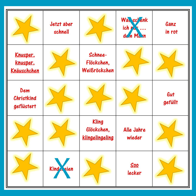 Für volle Bingo-Reihen siehts momentan noch mau aus hier. Dennoch freue ich mich jetzt über zwei Kreuze beim Weihnachtsbingo! Und noch ist ja Zeiiiiit….