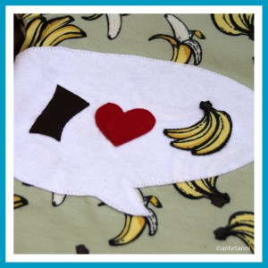 Erst wollte ich die Applikationen auf einen Jerseystoff aus dem Fundus bügeln, dann aber entdeckte ich im Stoffgeschäft vor Ort, in dem ich vierzehntägig auch zum Nähen gehe, einen wunderbaren Stoff namens „Little Darling“ mit den witzigen Bananen drauf. Affe + Banane… Eine bessere Kombination gibt es wohl kaum. 😉 Und wenn die Stoffserie dazu einen solch bezaubernden Namen hat…