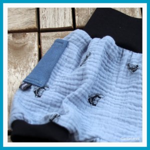 In diesem Sommer habe ich das Material Musselin für mich entdeckt. Wahrscheinlich werden wir keine Freunde fürs Leben werden, aber für luftige Sommerkleidung für die Kleinen finde ich das Material genial (zum Beispiel bei diesem luftigen→ Kleid und Pumphose). Für heiße Temperaturen ist das Material super, habe ich gelesen, und so habe ich diese kleine Hose in Größe 62 nun auch aus Musselin genäht.