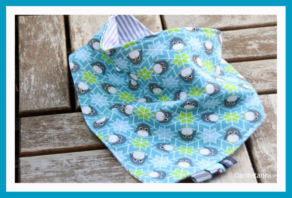 antetanni-naeht-Halstuch-zum-Wenden-Zwergenverpackung-farbenmix-happy-penguin_geschwisterkind_2018-10