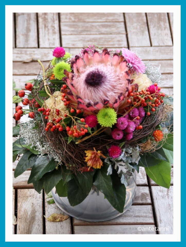 antetanni-fotografiert_Protea-Blumenstrauss-Vase-Glas_2018-11