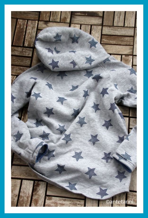 Anfang 2016 (!) hatte ich für mich selbst einen Sweatshirtstoff in Grau mit blauen Sternen gekauft, aus dem ich läääängst einen Pullover für mich habe nähen wollen. Das Thema Zeit… eine fast schon unendliche Fortsetzungsgeschichte… Oder auch: Gut Ding will wohl (mehr als) Weile haben…