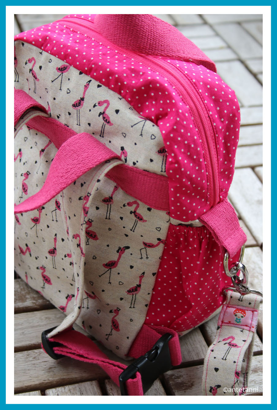 antetanni-naeht-Rucksack-Little-Lialuma-Pink-Flamingos-Taschenanhaenger-seitliche-Gummizugtaschen