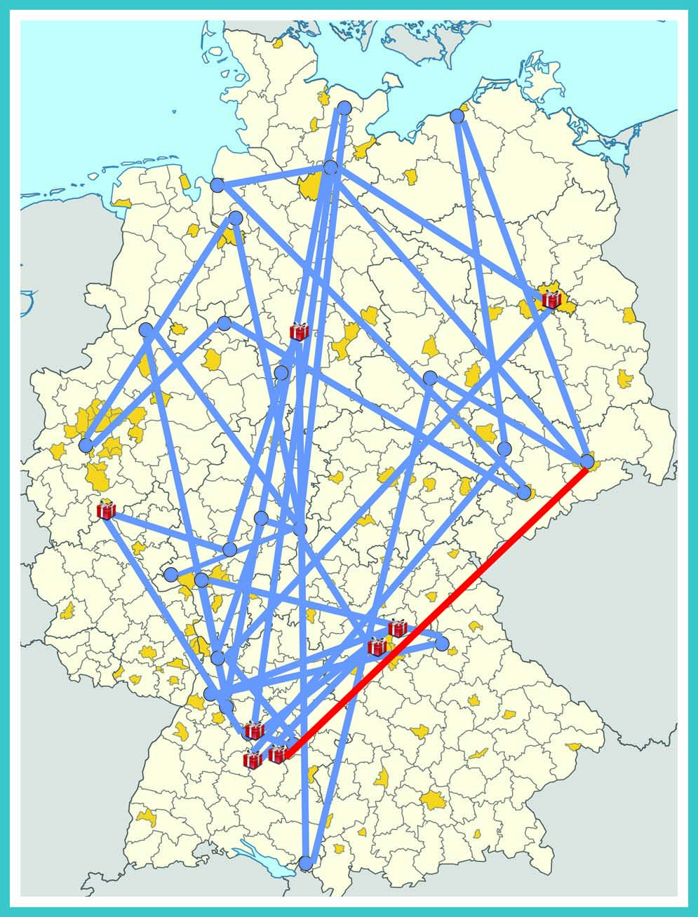 Um an der letzten Station in diesem Jahr anzukommen, hat die Kiste von gestern auf heute nochmals über 550 Kilometer zurückgelegt. Insgesamt hat sie damit eine Strecke von weit über 12.000 Kilometern auf dem Buckel. Laut unserer Wanderkarte, die Jana für jeden Tag erstellt hat – Respekt und ein großes Dankeschön dafür – kommt die Kiste auf 12.661 Kilometer. Der Wahnsinn!