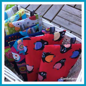 Der Adventsmarkt stand vor der Tür, da dachte ich, ich könnte mein Sortiment aus allerlei Genähtem aus Jeans doch um ein paar hübsche wie nützliche Dinge aus bunten Stoffen erweitern. Neben den Obst- und Gemüsebeuteln packte ich also auch neun Coolpacks (inklusive) ein, die einen abnehmbaren Kissenbezug mit Hotelverschluss haben. Die Bezüge sind aus Baumwollstoffen genäht und können in der Waschmaschine gewaschen werden. Solche Kleinigkeiten sollten bei einem Markt, der vor allem Besucher mit kleinen Kindern anzieht, doch laufen, oder?