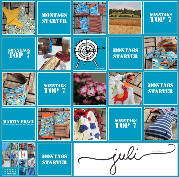 Ich wiederhole mich: ich stehe nicht in irgendeinem Wettbewerb und bevor ich mich lange an Zahlen aufhalte, freue mich, auch im Juli auf altbewährte Aktionen wie den Montagsstarter (4 x im Juli) oder die Sonntags Top 7 (4 x) zurückschauen zu können. Und dazu haben sich dann noch ein paar weitere Blogbeiträge gesellt. Ich habe ein bisschen was genäht, was mich immer wieder aufs Neue sehr freut, ich war Woche für Woche auf Foto-Reise und auch sonst war einiges los…