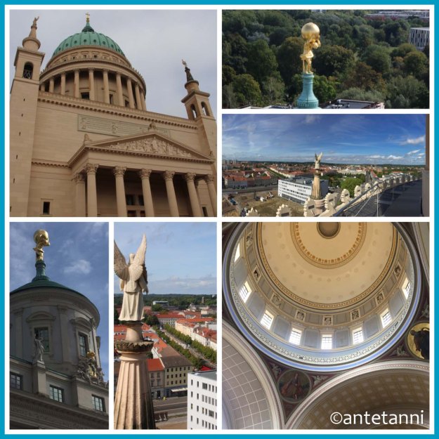 Heute habe ich ich mich für eine Collage entschieden, die einen kleinen Ausblick auf, in und von der Nikolaikirche in Potsdam über die Stadt zeigt.