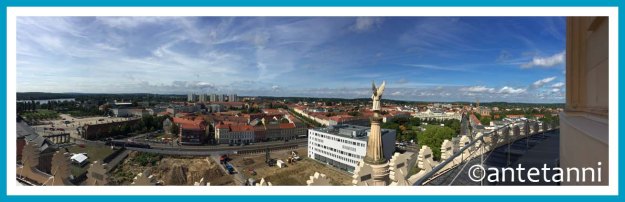 An diesem Tag haben wir Potsdam erkundet und mit einer Besteigung der 77 Meter hohen Nikolaikirche begonnen und uns so einen ersten Überblick über die Landeshauptstadt Brandenburgs und das wunderschöne Umland verschafft. Puhh, da ging es einige Stufen hinauf und es war ganz schön eng. 🙂 Schade, dass an diesem Tag keine Führung in der Kirche stattfand, ich mag es nämlich gerne, wenn ich Fakten nicht immer nachlesen muss, sondern wenn mir jemand erzählt, wann und von wem etwas erbaut oder gemalt wurde usw. Ein bisschen habe ich dann eben im Internet recherchiert und unter anderem unten ein Kuppelpanorama verlinkt, das sehr lohnenswert anzuschauen ist. [Fantastisches Kuppelpanorama]
