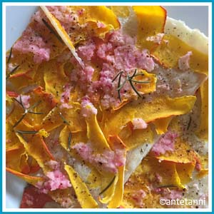 Das Rezept stammt aus dem Gratis-Kundenmagazin „Deine Küche“ 03/2020 vom Rewe. Danke dafür und vor allem wieder ein großes Dankeschön an unsere liebe Nachbarin Renate, die uns das Magazin immer wieder mitbringt! Die Kürbispizza wandert wieder auf meine Hitliste an Gerichten und ist auch perfekt fürs Party-Buffet. Yummy. ♥