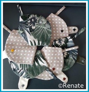 Ebenso fleißig hat Renate Masken-Etuis genäht. Gleich sechs Stück an der Zahl und wenn verreisen schon nicht möglich ist, so muten drei Etuis doch ganz schön exotisch an und wecken die Vorfreude auf wann auch immer… 🙂
