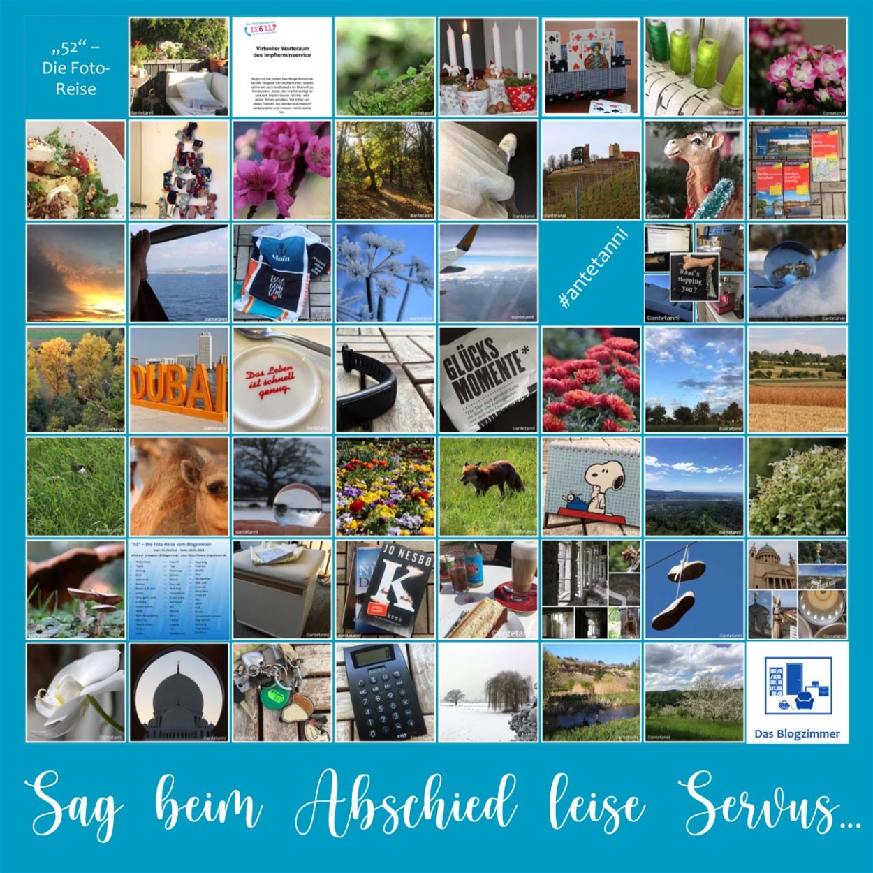 Nicht aber, ohne auch die Collage dazulassen, die dir auf einen Blick nochmals meine bunte Route der 52-Foto-Reise zeigt. ♥ An dieser Stelle gilt mein Dank auch nochmals Jana | zumnaehenindenkeller. Die Template-Funktion für die Tabelle kannte ich vor der Foto-Reise noch gar nicht und so freue ich mich sehr, wieder etwas gelernt zu haben.