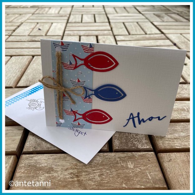 Enthalten war diese bezaubernd gewerkelte Karte und ich freue mich so so sehr darüber. Hach, sie macht doch richtig Lust auf Sommer, Sonne und Meer. Alles drei nicht vorhanden in diesen Tagen, umso schöner der maritime Gruß. Und ein bisschen in den Genuss des Meeres komme ich in diesem Jahr ja tatsächlich noch. Vermutlich nicht mehr zum Baden bei den Temperaturen draußen, aber vielleicht reichts fürs Füße reintauchen… Bis dahin tauche ich nochmals ab in diese freudige Post…