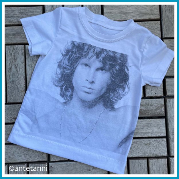Wild und rebellisch sind nicht die Attribute, die mir zu Baby L. einfallen würden. Vielmehr ist er ein immer strahlender, liebevoller und gut gelaunter kleiner Wirbelwind. Die Mama, meine Nichte, liebt The Doors und Jim Morrison und brachte vor ein paar Wochen schon ein ihr zu klein gewordenes T-Shirt mit der Frage zu mir, ob ich daraus ein Shirt für Baby L. nähen könnte.
