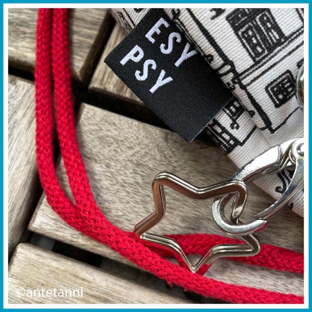 Da Sibylle Rot sehr gerne mag, habe ich für den Tunnelzug und für das Innenfutter einen roten Stoff mit Sternen ausgesucht. Eingearbeitet habe ich noch eine große Reißverschlusstasche, damit in den Tiefen des Turnbeutels der Schlüssel, die Fahrkarte oder der Geldbeutel schnell zu finden sind. Außerdem gibt es ein abnehmbares Schlüsselband mit einem Stuttgart-Webband als Erinnerung an ihre Zeit in der großen Stadt. ♥