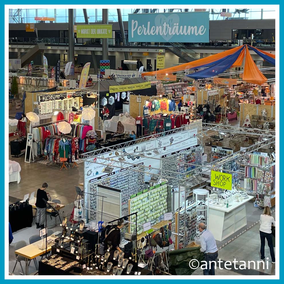 Die Bilder stellen eine willkürliche Auswahl dar, ich fand ganz viele Stände richtig toll, insgesamt aber hätte ich mir mehr Stände mit Material gewünscht. Stoffe gab es sehr viele, vermisst habe ich Papiere und anderes kreatives Bastelmaterial, auch hinsichtlich Stempeln und Stanzen erschien mir das Angebot geringer als noch in der Vor-Corona-Zeit. Dafür gab es für meinen Geschmack zu viele Stände, die bereits fertige Handwerkskunst im Angebot hatten. Schöne Sachen, keine Frage, aber auf der Kreativ erwarte ich Material, um selbst kreativ werden zu können, und weniger bereits gewerkelte Dinge, die für mich auf die Handwerker- oder Adventsmärkte gehören.
