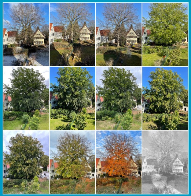 Das Bild für die Collage habe ich wie erwähnt zwar schon vor ein paar Tagen aufgenommen, dafür aber wieder morgens um 09:40 Uhr. Von Licht und Schatten durch den niedrigen Sonnenstand ist da nichts zu sehen. Schön aber ist die Veränderung des 12tel-Blicks in den vergangenen elf Monaten zu erkennen…