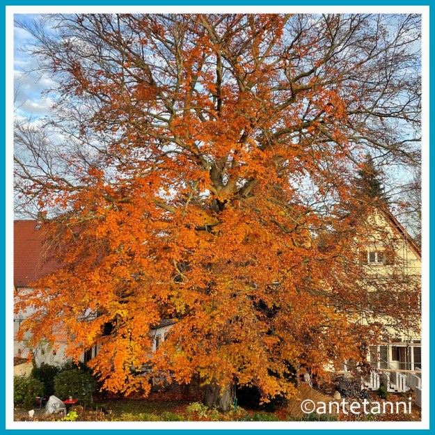 Ich wiederhole mich. Das Laub lichtet sich, der Winter naht… In rotgoldenem Glanz zeigte sich die Buche am Sonntagmorgen und ich konnte nicht umhin, sie da schon für den 12tel-Blick zu fotografieren.