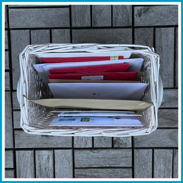 Ich sammle die Briefumschläge in einem Körbchen. Für neun Tage fehlen die Briefe noch, aber der Advent hat ja eben erst angefangen. Heute freue ich mich über diese schöne Post und bald zeige ich dir, wie es weitergegangen ist…