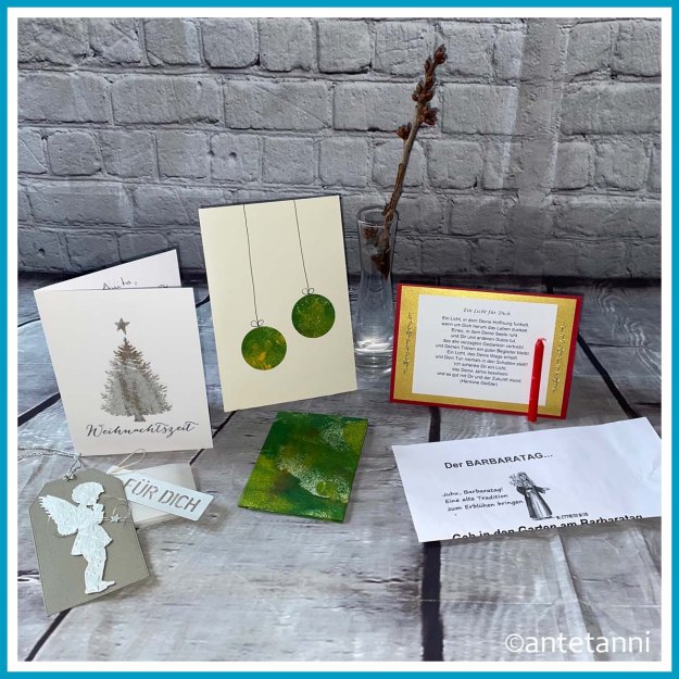 Heute, an Tag 4, hat Carola einen Zweig vom Kirschbaum in ihre Adventspost gepackt. Darüber freue ich mich ganz besonders, denn ich habe noch nie (!) einen Kirschbaumzweig am Barbaratag ins Wasser gestellt. Es ist also eine Premiere und ich bin sehr gespannt und freue mich über diese Tradition, einen Zweig zum Erblühen zu bringen.