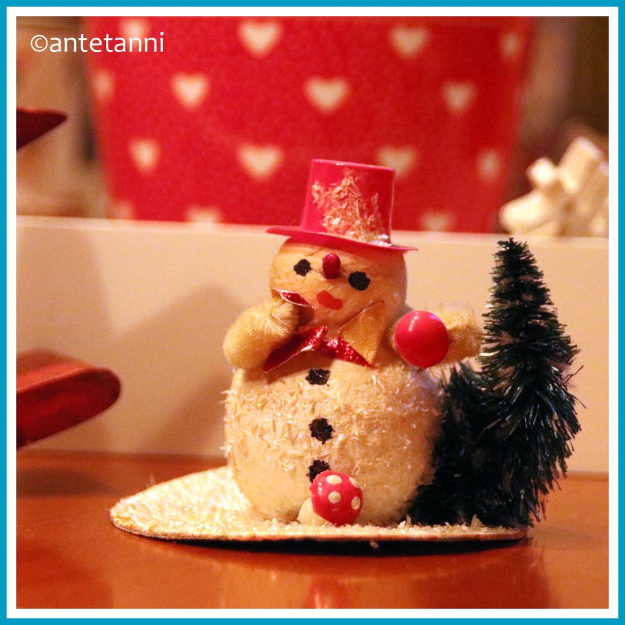 In dem Jahr, als ich geboren wurde, hat Opa Franz einen Schneemann für mich gebastelt. Im Sommer wohnt der Schneemann im Keller in einer der Kisten voller Adventsdekorationen, im Dezember aber kommt er nach oben und ich freue mich jedes Jahr wieder, dass es diesen kleinen Schatz bis heute gibt. ♥