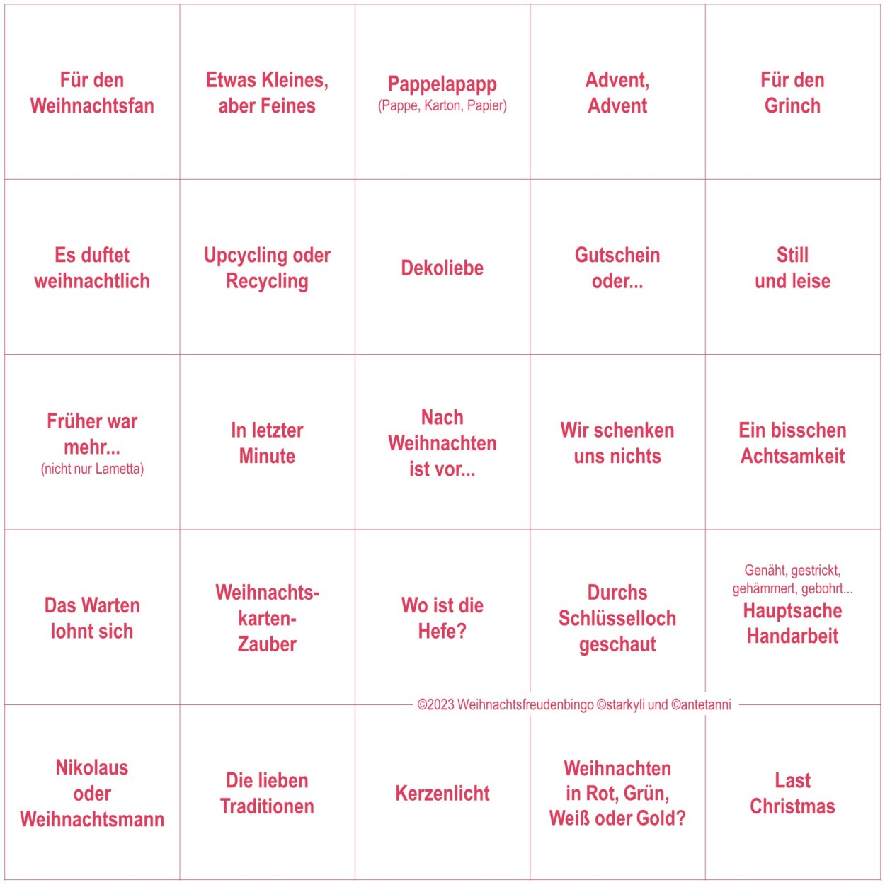 Pingback: Weihnachtsfreudenbingo 2023 | Geschafft | antetanni