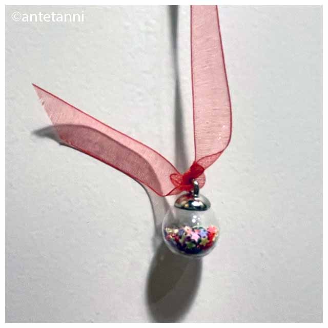 Auslandspost… Beigaben sind in Briefen nicht mehr erlaubt, ich habe aber trotzdem eine kleine Bastelei für Pia eingepackt. Mit auf den Weg in die Schweiz haben sich acht Dalapferde gemacht, die ich auf ein rotes Band aus Organza geklebt habe und die man ans Fenster oder eine Tür hängen kann. Unten an das Band habe ich eine kleine Glaskugel, befüllt mir kleinen Sternen geknotet, so hängt sich das Band schön aus.
