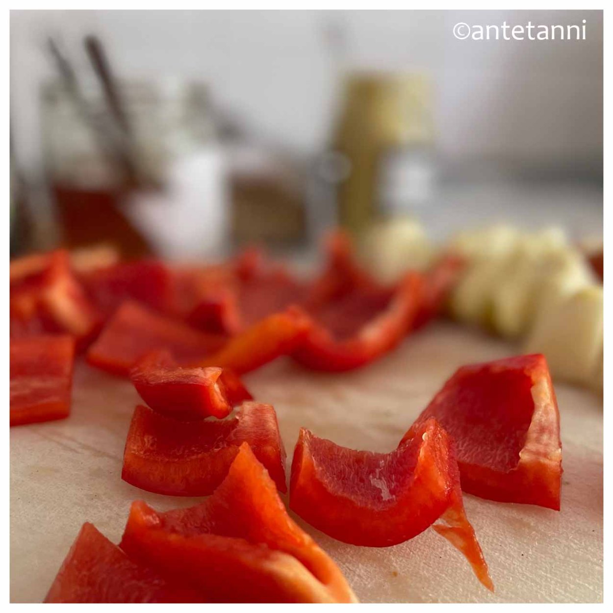 • 1 rote oder gelbe Paprikaschote (in Stücken)
