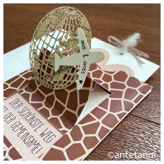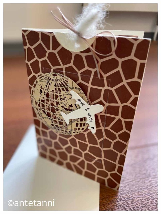 Ha, dachte ich, da bastle ich doch „schnell mal“ ein Kärtchen dazu. Afrika = Anreise mit dem Flugzeug = Giraffen in der Savanne… I love it.