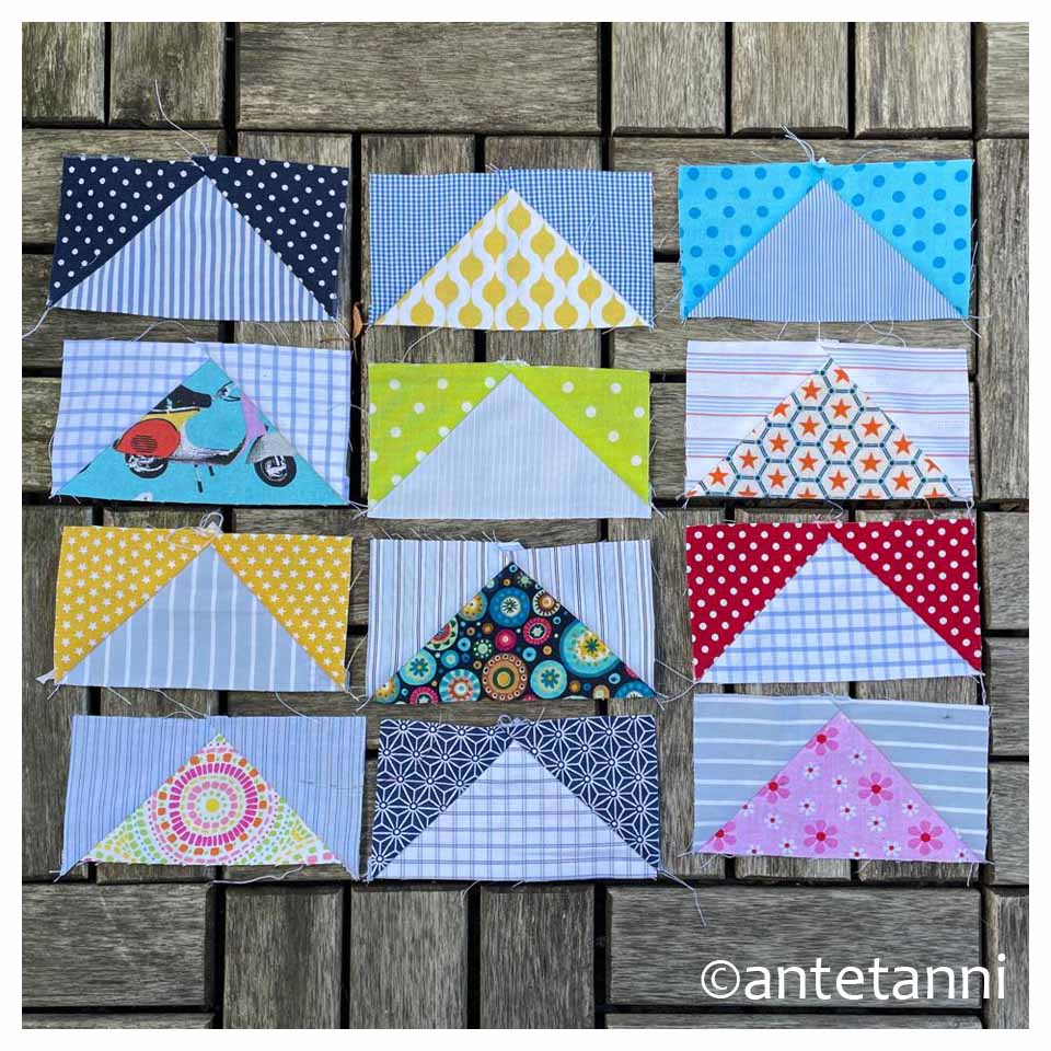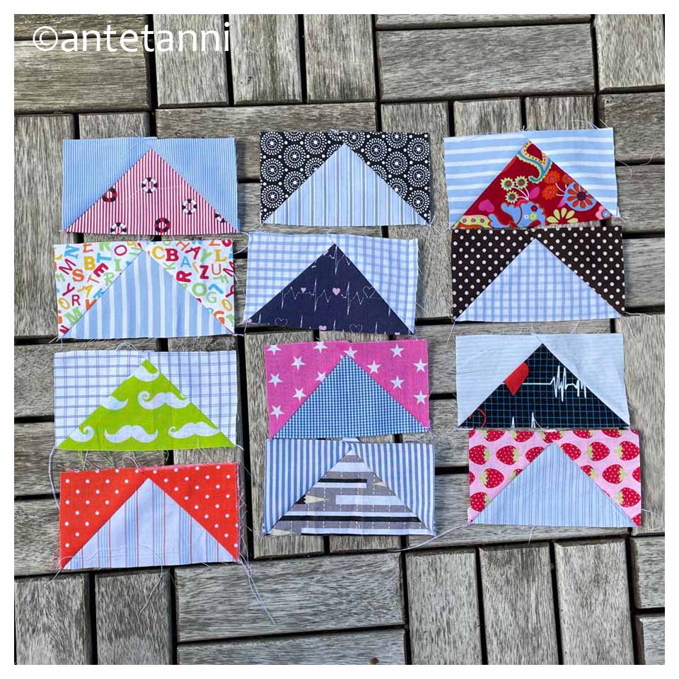 Eine Fleißarbeit werden die vielen kleine Half Square Triangles werden. Die habe ich (auch) noch nicht zusammengenäht, das steht noch an…