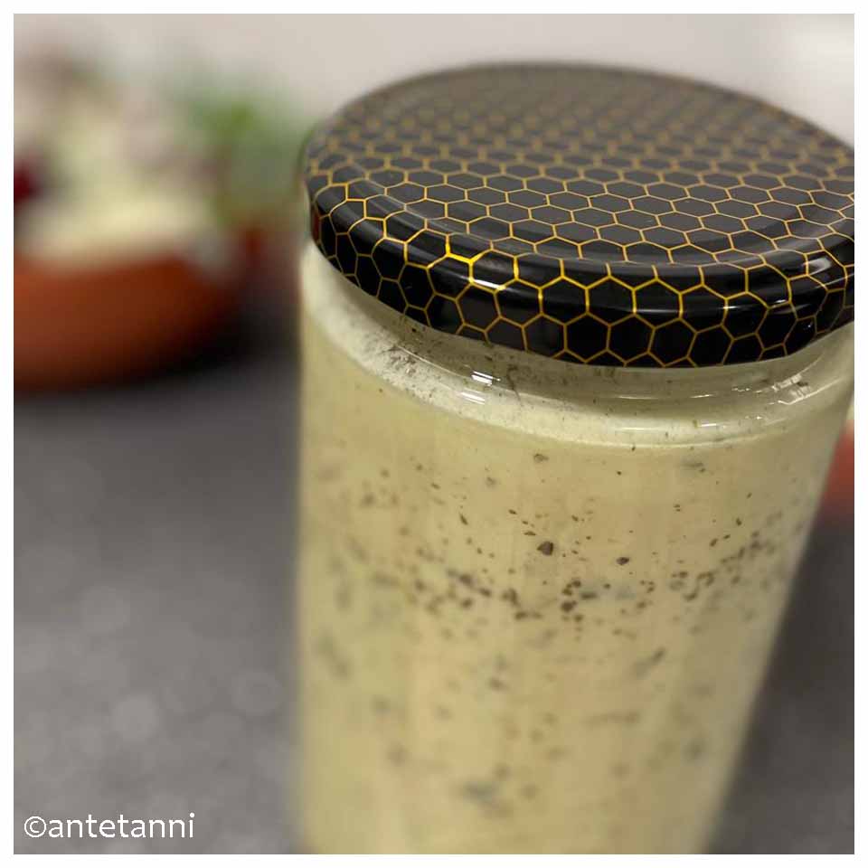 Schmeckt sehr lecker zu Blattsalaten und Rohkost. In der Themenliste im BINGO 2025 gibt es das Feld Küchenschlacht und ich freue mich sehr, letzte Woche wieder einmal eine dieser Schlachten geschlagen zu haben und dafür heute das entsprechende Feld mit der Salatsauce auf Vorrat abhaken zu können.