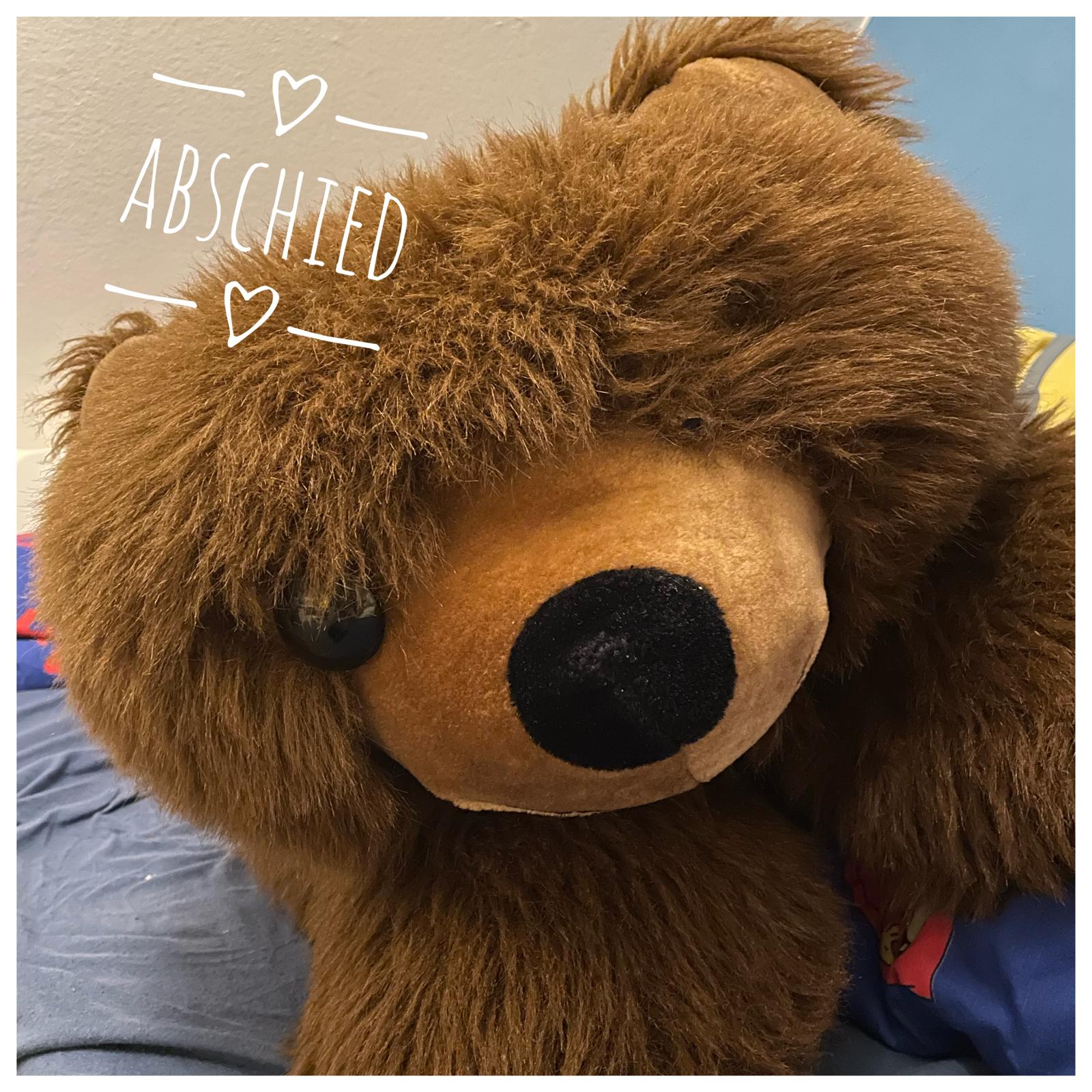 Ein wenig wehmütig haben wir Abschied von unserer Christel genommen. Also eigentlich war es natürlich Juniors Teddybär, aber Christel ist uns als Familie ans Herz gewachsen. Wir haben sie vor etwa 20 Jahren von meiner damaligen Kollegin namens Christel bzw. von ihrer Tochter bekommen, die sie schon jahrelang im Besitz hatte. Sie hatte damals mindestens schon zwischen 6 und 10 Jahren im Bärenfell und wurde fortan von Junior ausgiebig bekuschelt und sehr geliebt. Mit ihren 120 cm Länge und 50 cm Breite lag sie die letzten Jahre (schon seit Junior sein Hochbett vor Jaaaahren gegen ein großes Bett eingetauscht hatte) nun aber doch oft im Weg und wir hatten keine Idee, wo wir sie weiter aufbewahren sollten. Sie im Müll und damit in der Müllverbrennung zu entsorgen, kam für uns überhaupt nicht infrage (nieeeeeeemals!!!) und so habe ich Christel am Sonntag ohne lange zu überlegen und sehr spontan über Kleinanzeigen verschenkt. Sie wurde am gleichen Tag abgeholt und hat nun ein neues Zuhause nicht allzu weit von uns entfernt in einem Dorfgasthof gefunden.