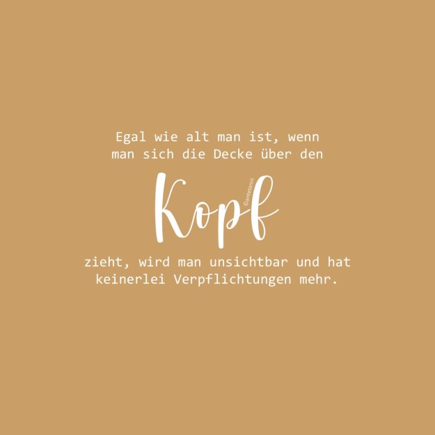 Das Monatsmotto ist wunderbar. Ich habe es heute Morgen schon mal beherzigt. Und irgendwie fiel mir dabei ein Song von Heinz Rudolf Kunze ein: Du bist nicht allein. Ich weiß nicht, warum, denn in dem Lied zieht sich niemand die Decke über den Kopf, aber irgendwie fand ich es passend.