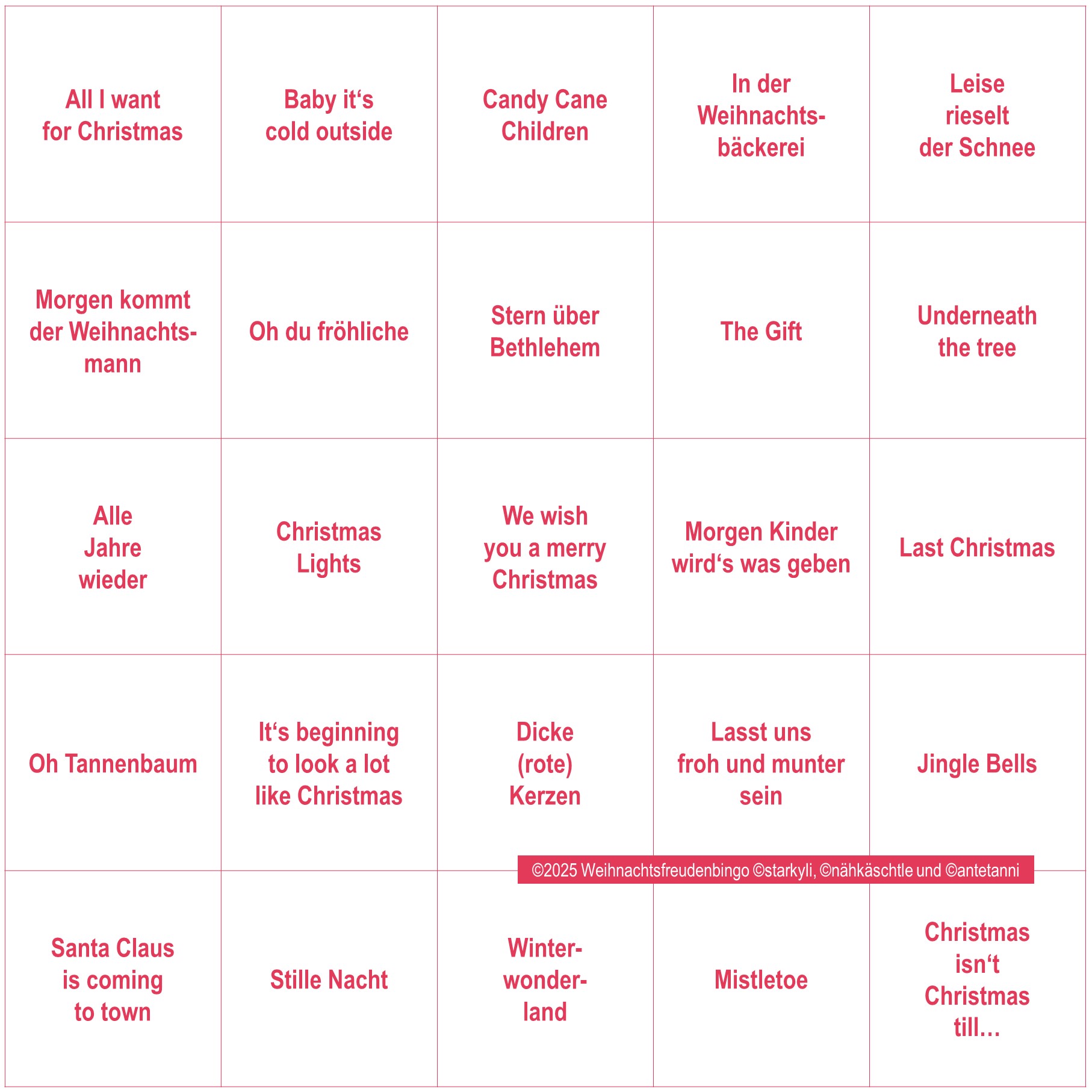 Das Weihnachtsfreudenbingo 2025 ist eine Spielerei von → Anja | Starky, → Ingrid aus dem Nähkäschtle und von mir.