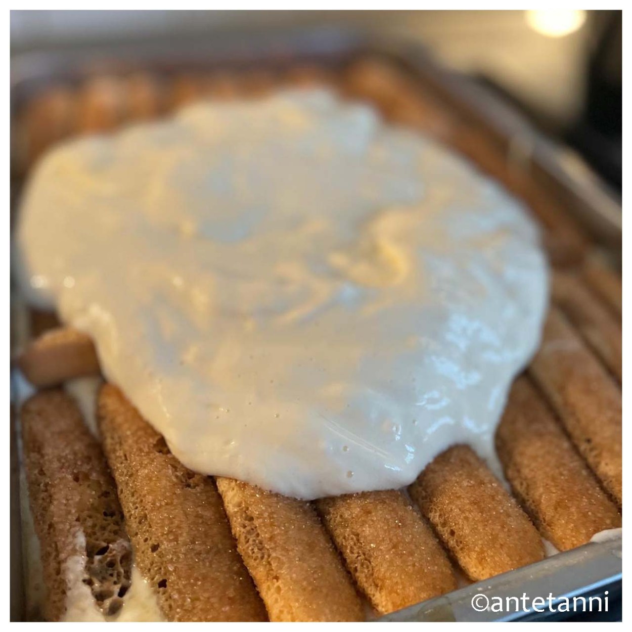 Tiramisu bedeutet auf Deutsch wörtlich „Zieh mich hoch“ oder „Richte mich auf“, was sich auf die belebende Wirkung des Kaffees und des Desserts bezieht, das glücklich machen und munter machen soll, so die Google-KI. Unser Tiramisu ist mit koffeinfreiem Espresso und ohne Alkohol (ersatzweise Bittermandelaroma) zubereitet, da am Weihnachtstisch auch kleine Kinder saßen.