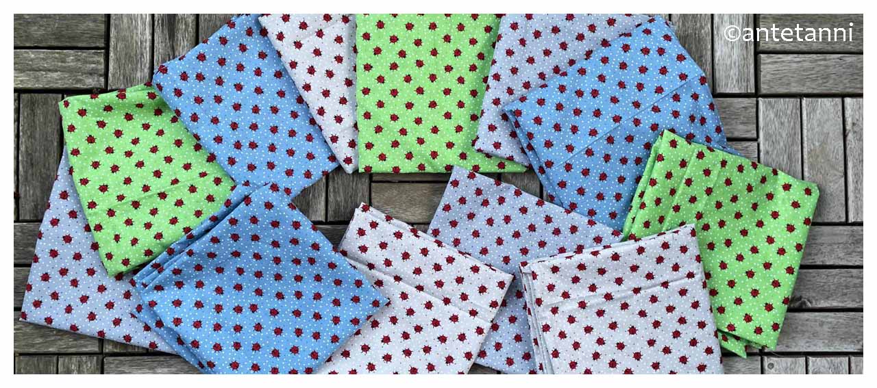 Heute habe ich aus Baumwollwebware mit Glückskäfern 12 Kissenbezüge im Format 40 x 40 cm und mit Hotelverschluss genäht. So lassen sich die Bezüge leicht abnehmen und ebenso leicht wieder aufziehen.