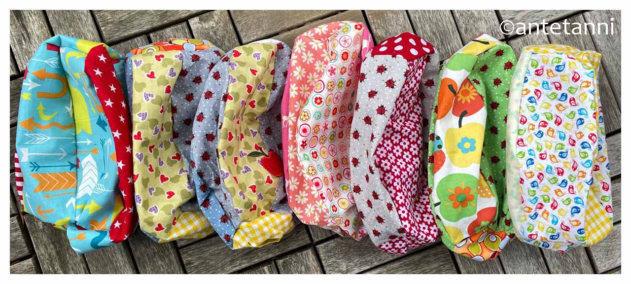 Also habe ich mich im Netz umgeschaut und die Reste der Glückskäfer-Stoffe mit weiteren Stoffresten aus dem Fundus kombiniert und heute 7 Luftballonhüllen nach der kostenlosen Anleitung von Edeltraud mit Punkten [unten verlinkt] genäht.