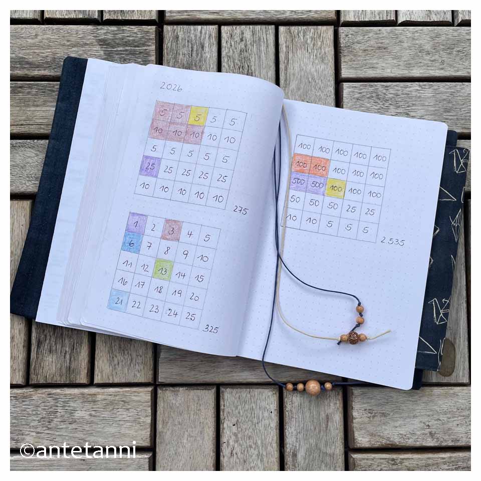 Gemalt wird auch 2026 wieder. Da ich im Januar bereits über 1.400 Teile aussortiert hatte und erst jetzt zum Notieren gekommen bin, wollte ich nun nicht zig Zahlenfelder von 1 bis 25 anmalen und habe daher zwei Zahlenfelder mit höheren Zahlen angelegt. Bisschen doof ist – ich hätte die Felder für die hohen Zahlen im Verhältnis größer zeichnen sollen. Aber es ist jetzt wie es ist, ich lasse das so und versuche künftig wieder, jeden Beitrag sofort in Zahlenfeldern darzustellen. Mal gucken, ob ich weiter so gut vorankomme, denn es sind noch viele 100er- und 50er-Felder frei. 😀