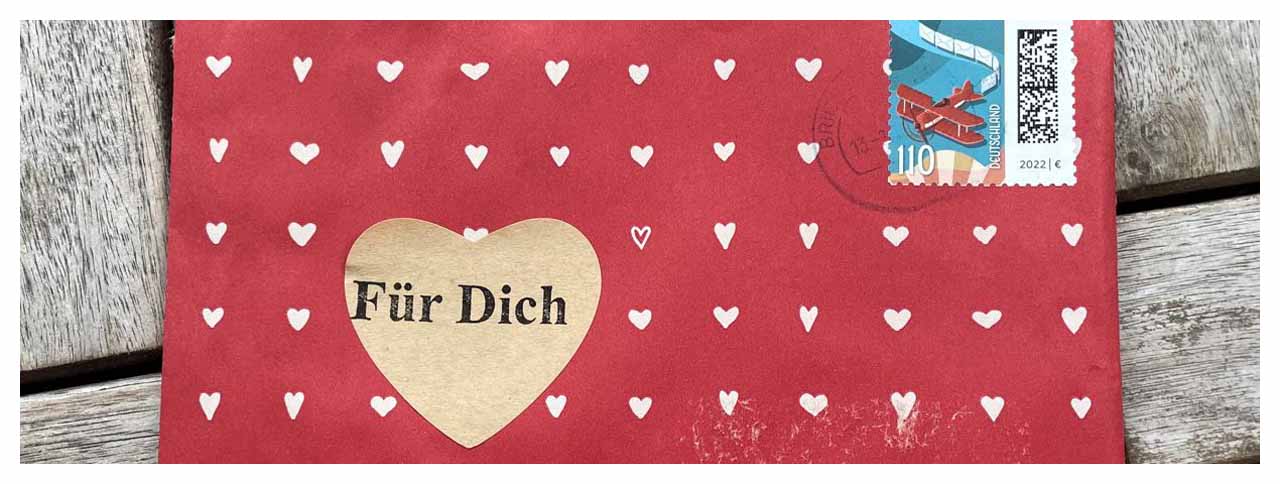 „Du hast schon wieder Post“, sagte mein Mann, als er am Samstag vom Einkaufen kam. Wie? Was? Post? Von wem? „Aus…“. Aha. Schnell die Treppe runtergeflitzt und da lag er – ein wunderschöner roter Umschlag voller Herzen. Ohhhh wie schön. Und innen erst…