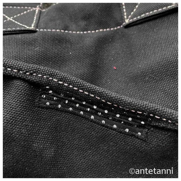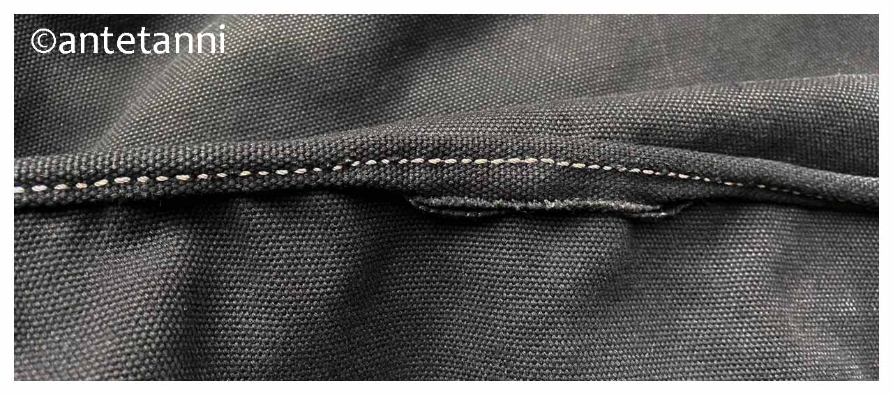 Im Flur gibt es einen Korb, in dem die Einkaufstaschen liegen. Beim Aufräumen am Wochenende – unter anderem musste dieser Korb mal wieder ausgesaugt werden – fiel mir beim Zurücklegen der Taschen auf, dass an einer die Nahtverstärkung am Rand ein Stück ausgefranst war (die Naht war nicht offen, es hatte sich lediglich die Verstärkung gelöst). Die (Kauf-)Tasche ist vermutlich so genäht, dass die Nähte außen lagen und mit einem Stoffstreifen (wie ein Schrägband) eingefasst und verstärkt wurden.