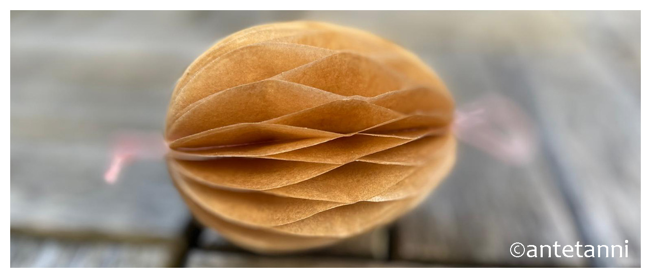 Ach so, ein zweiter Versuch, ein Wabenei aus alten Buchseiten, ist gescheitert. Das raue Papier hat den Tombow-Kleber nahezu geschluckt, ich musste mehrfach nachkleben und dann hat es wieder nicht gehalten. Nach mehreren Durchläufen habe ich aufgegeben. Hier wäre ein Kleberoller sicherlich besser geeignet, habe ich aber auch nicht im Haus. Nächste Woche ist die KREATIV-Messe, ein Kleberoller steht schon auf meiner Einkaufsliste…