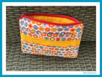 Als ich also dabei war, aus dem fröhlich-bunten Punktestoff eine Hülle für ein iPad-Mini zu nähen, ist fast nebenbei auch noch dieses Täschchen entstanden…
